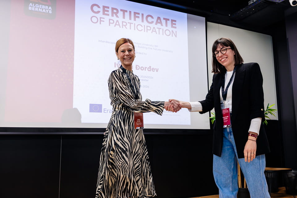 U periodu od 16. do 20. marta 2026. godine, na Sveučilištu Algebra Bernays (Algebra Bernays University) u Zagrebu održana je Međunarodna nedelja 2026. (International Week 2026), posvećena temi Interdisciplinarnost po dizajnu: izgradnja univerziteta budućnosti (Interdisciplinarity by Design: Building the Future University).